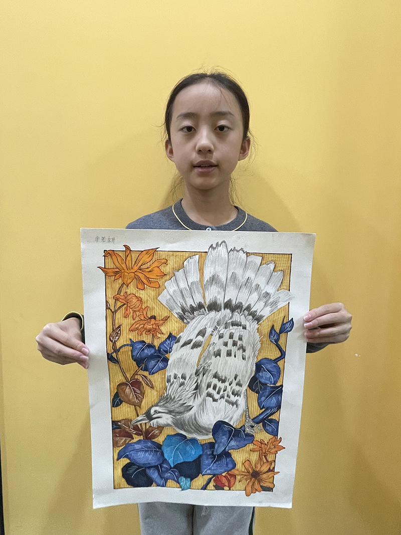 申若妍:12歲 畫齡:4年 作品名稱:《鳥》 指導(dǎo)老師:綠城麗達(dá)教學(xué)基地——王碧美