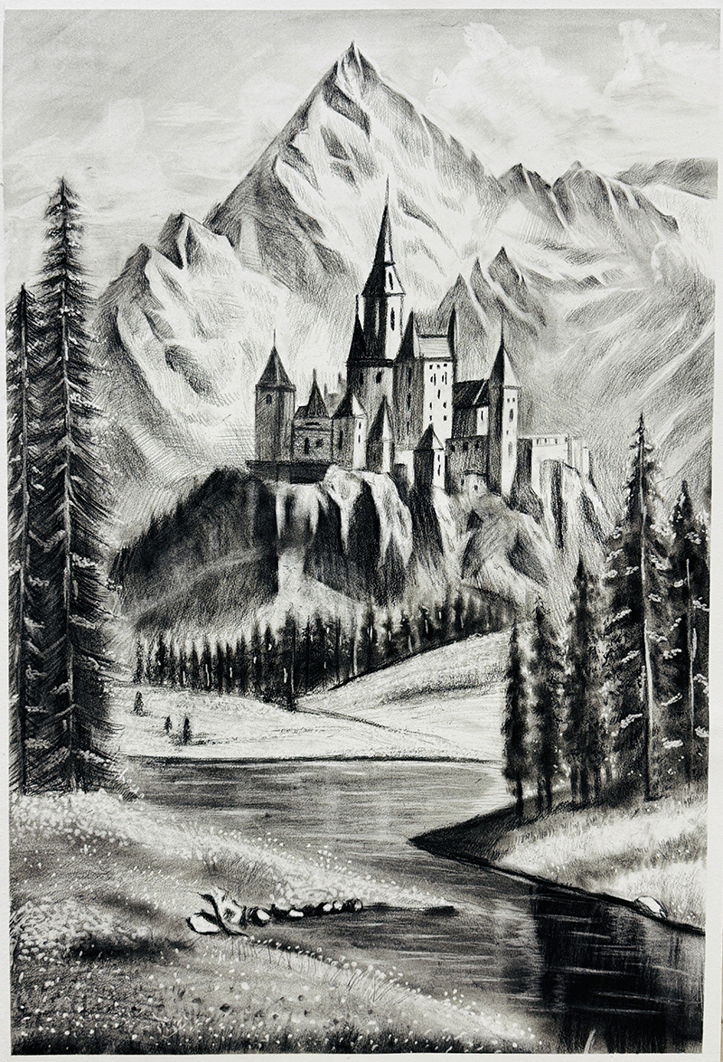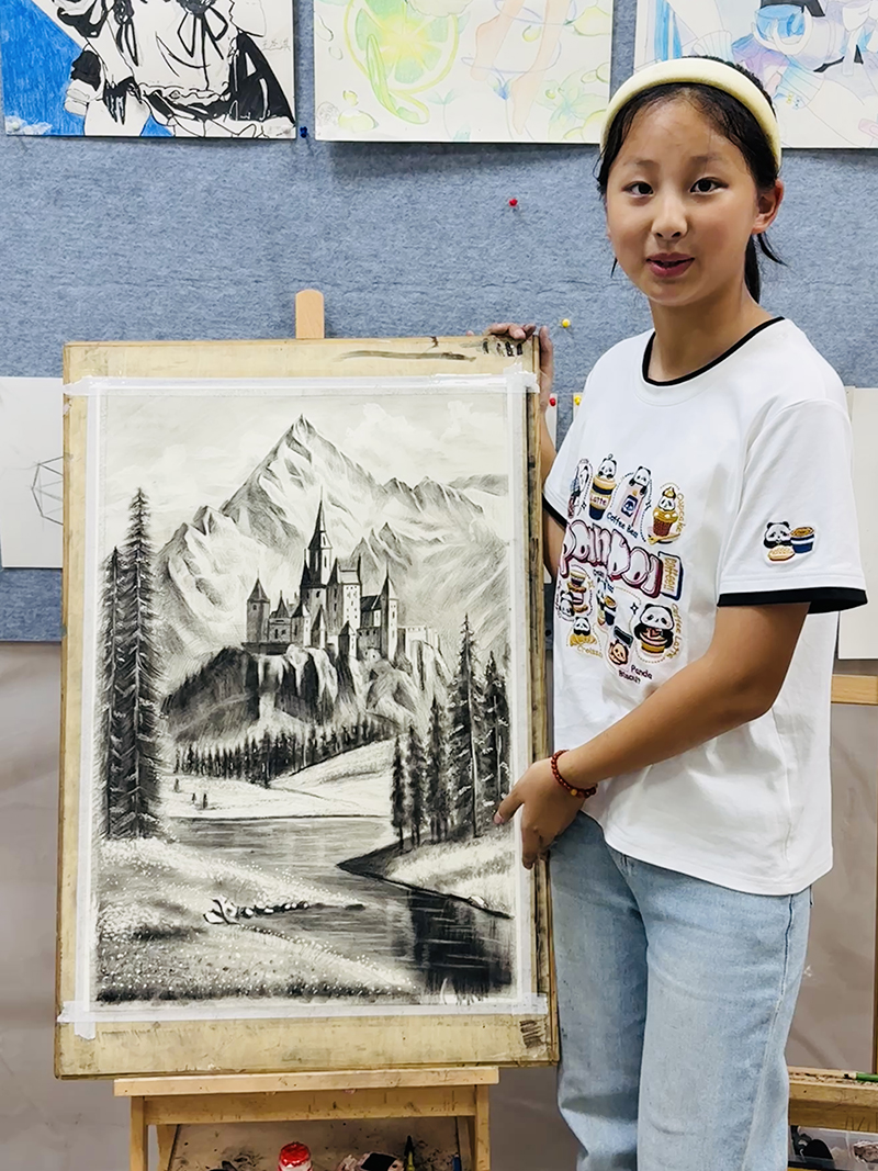 馬溶君:13歲 畫(huà)齡:5年 作品名稱(chēng): 《2開(kāi)風(fēng)景素描》 指導(dǎo)教師:李滄順和教學(xué)基地——王海倫