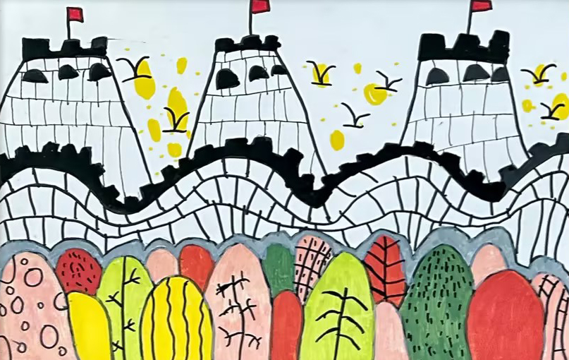 安美霖:6歲 畫齡:3個(gè)月 作品名稱:《萬(wàn)里長(zhǎng)城》 指導(dǎo)老師:膠南維客教學(xué)基地——盧鈺