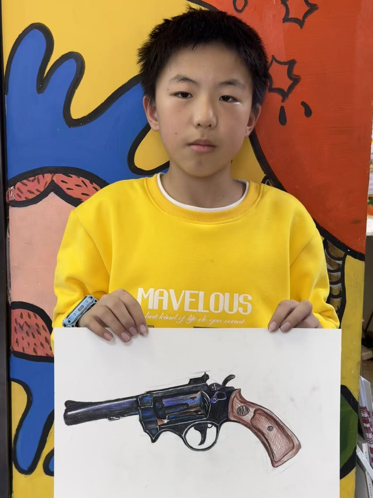 聶柄丞:14歲 畫齡:5年 作品名稱:《槍》 指導老師:黃島官廳教學基地——穆婧