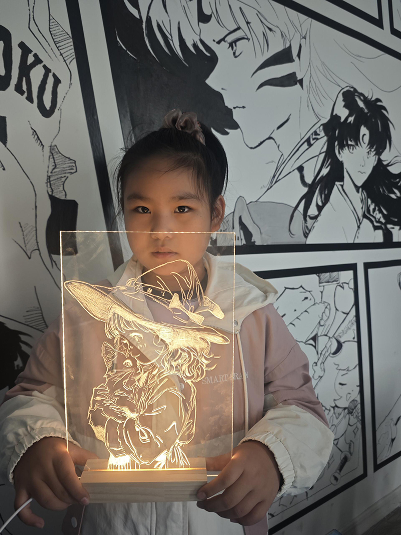 張軒:8歲 畫齡:2年 作品名稱:《亞克力版畫》 指導老師:中南世紀城教學基地——劉暢