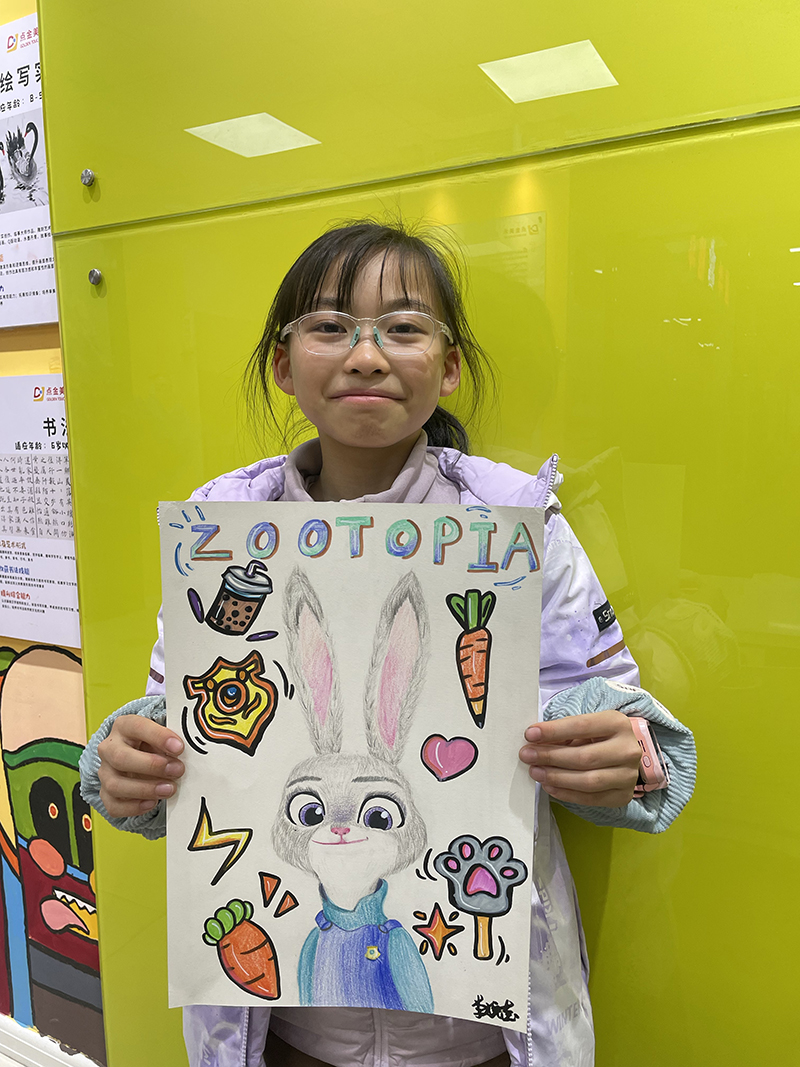 李婉瑩:12歲 畫齡:3年 作品名稱:《朱迪》 指導(dǎo)老師:黃島富春江教學(xué)基地——李彥侖