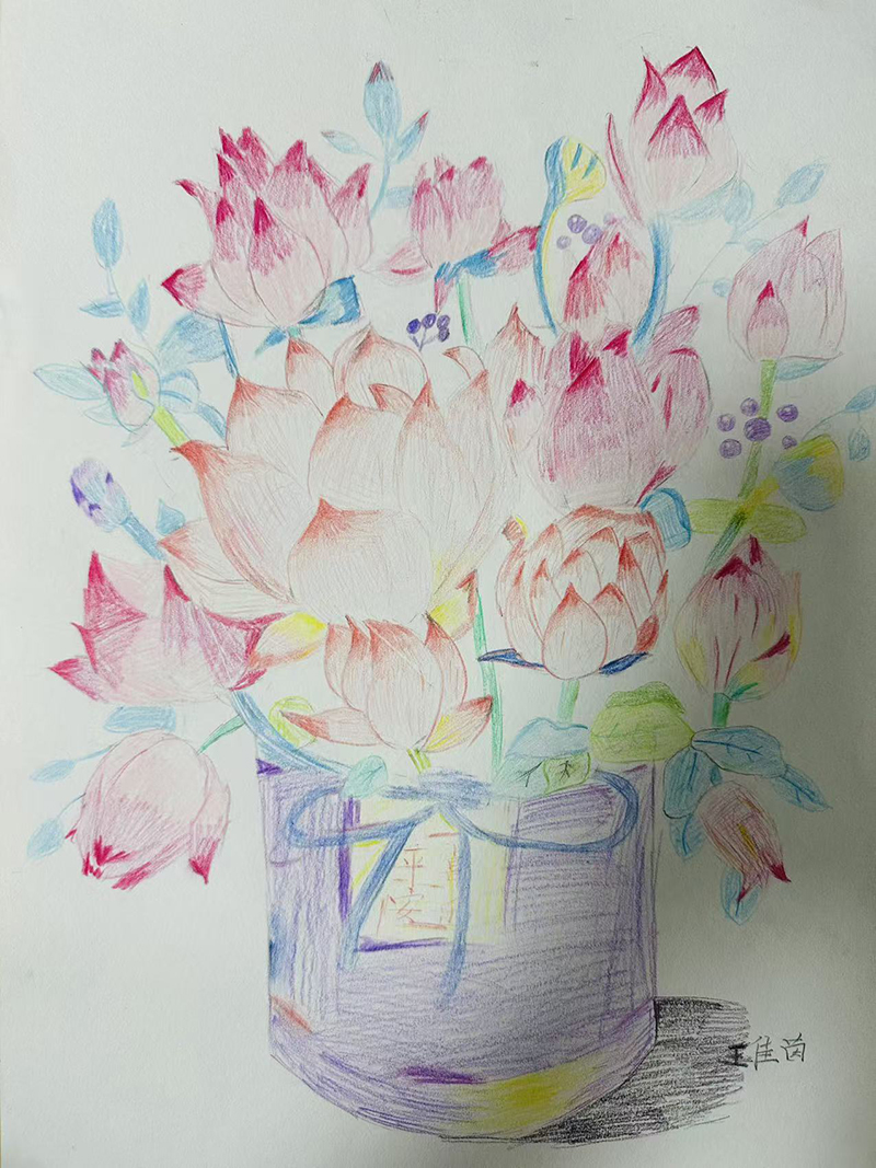 王佳茵:10歲 畫齡:1年 作品名稱:《福桶》 指導(dǎo)老師:黃島官廳教學(xué)基地——李金潼