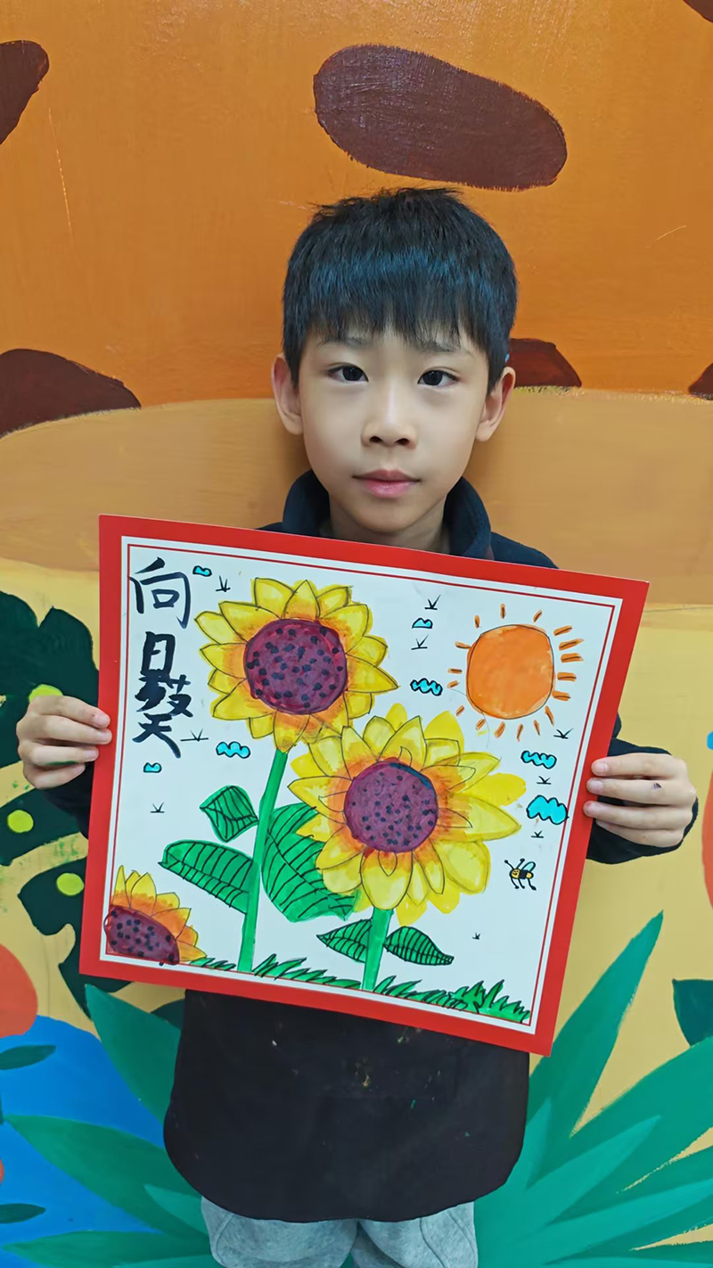 盧祺安:6歲 畫齡:6個月 作品名稱:《向日葵》 指導(dǎo)老師:中南世紀(jì)城教學(xué)基地——宋欣函