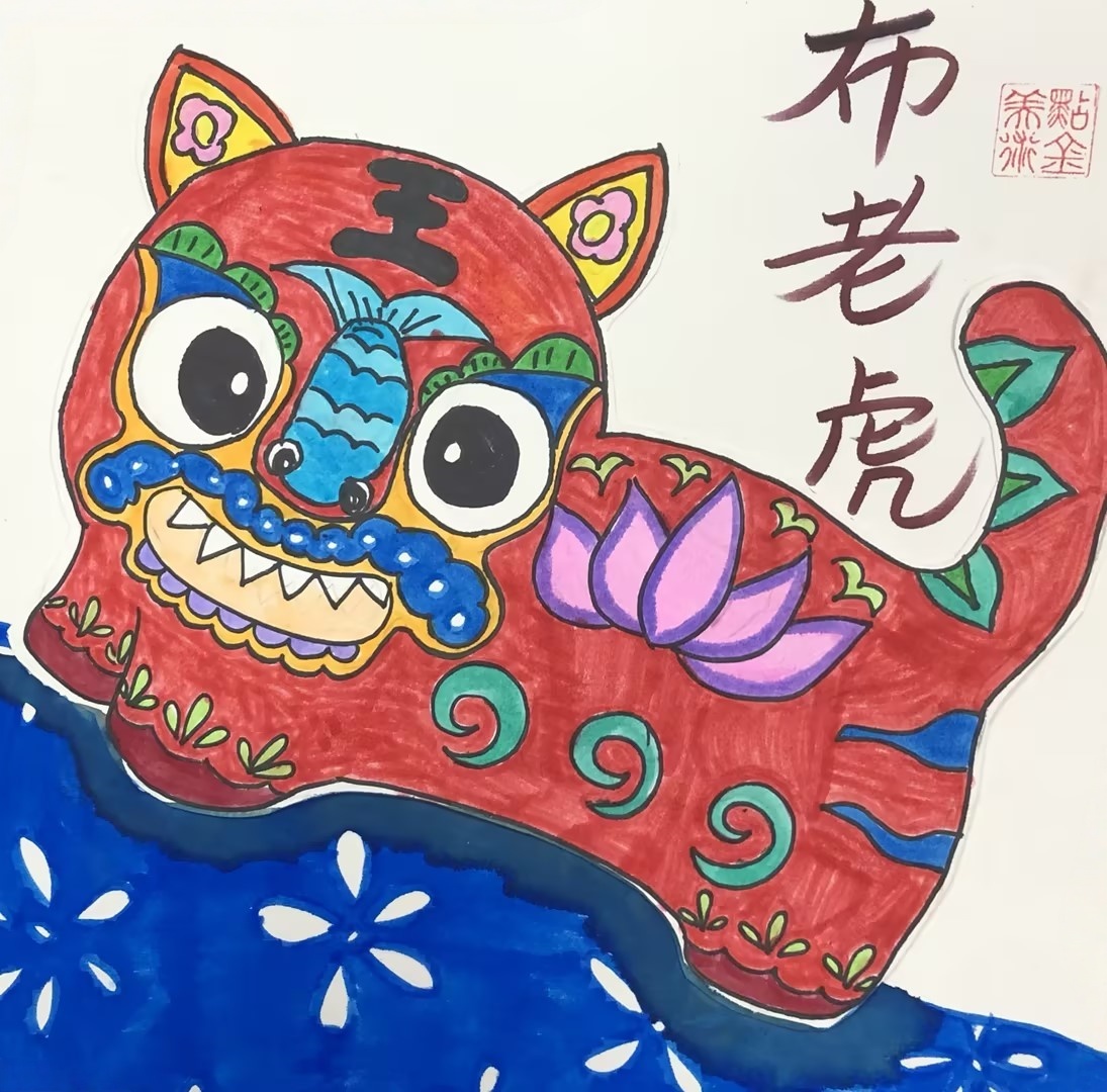 方志遠(yuǎn):7歲 畫(huà)齡:1年半 作品名稱:《布老虎》 指導(dǎo)老師:綠城麗達(dá)教學(xué)基地——付開(kāi)心