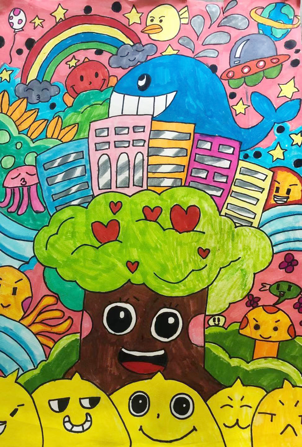 宋峙軒:8歲 作品:《綠色城市》 畫齡:2年 指導(dǎo)老師:李滄寶龍教學(xué)基地——張珺