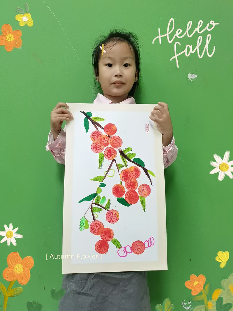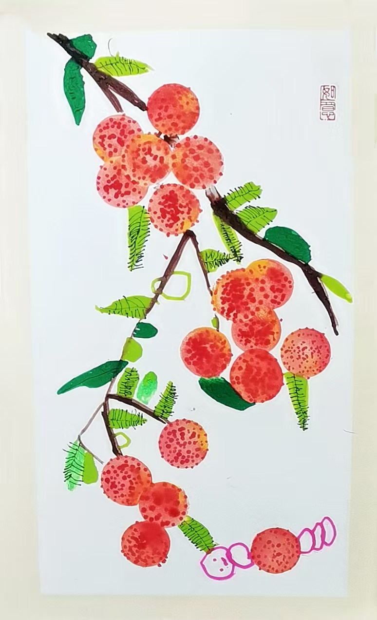 官桉羽:5歲 畫齡:1年 作品名稱:《荔枝》 指導(dǎo)老師:黃島官廳教學(xué)基地——龔麗鑒