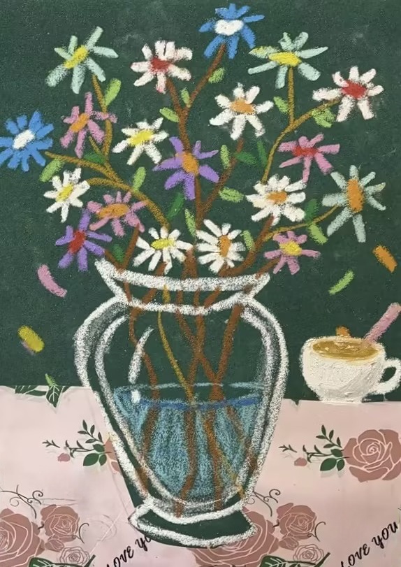 李芊羽:7歲 畫齡:1年 作品名稱:《小雛菊》 指導(dǎo)教師:黃島中聯(lián)教學(xué)基地——秦敏鴻