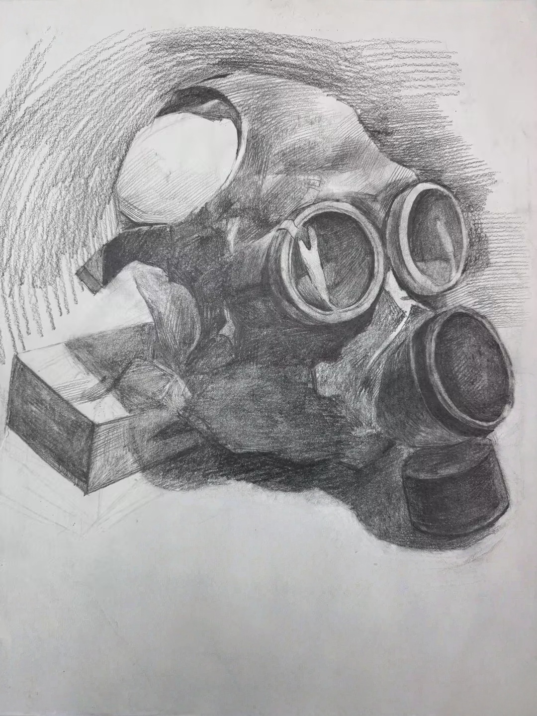 張陌軒:10歲 畫齡:1年 作品名稱:《防毒面罩》 指導老師:城陽東方城教學基地——陳楓儀