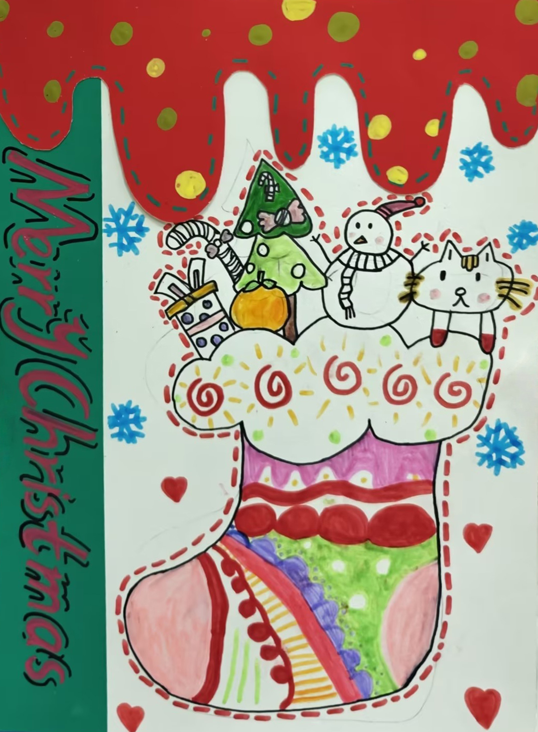 胡瑤:5歲 畫齡:6個(gè)月 作品名稱:《圣誕襪子》 指導(dǎo)老師:麗達(dá)茂教學(xué)基地——杜雨萌