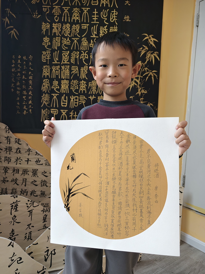 姜言蹊:7歲 畫齡:1年半 作品名稱:《將進酒》 指導老師:嶗山大拇指教學基地——吳倩如