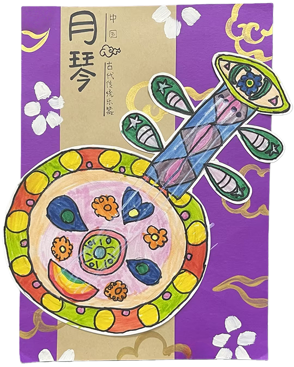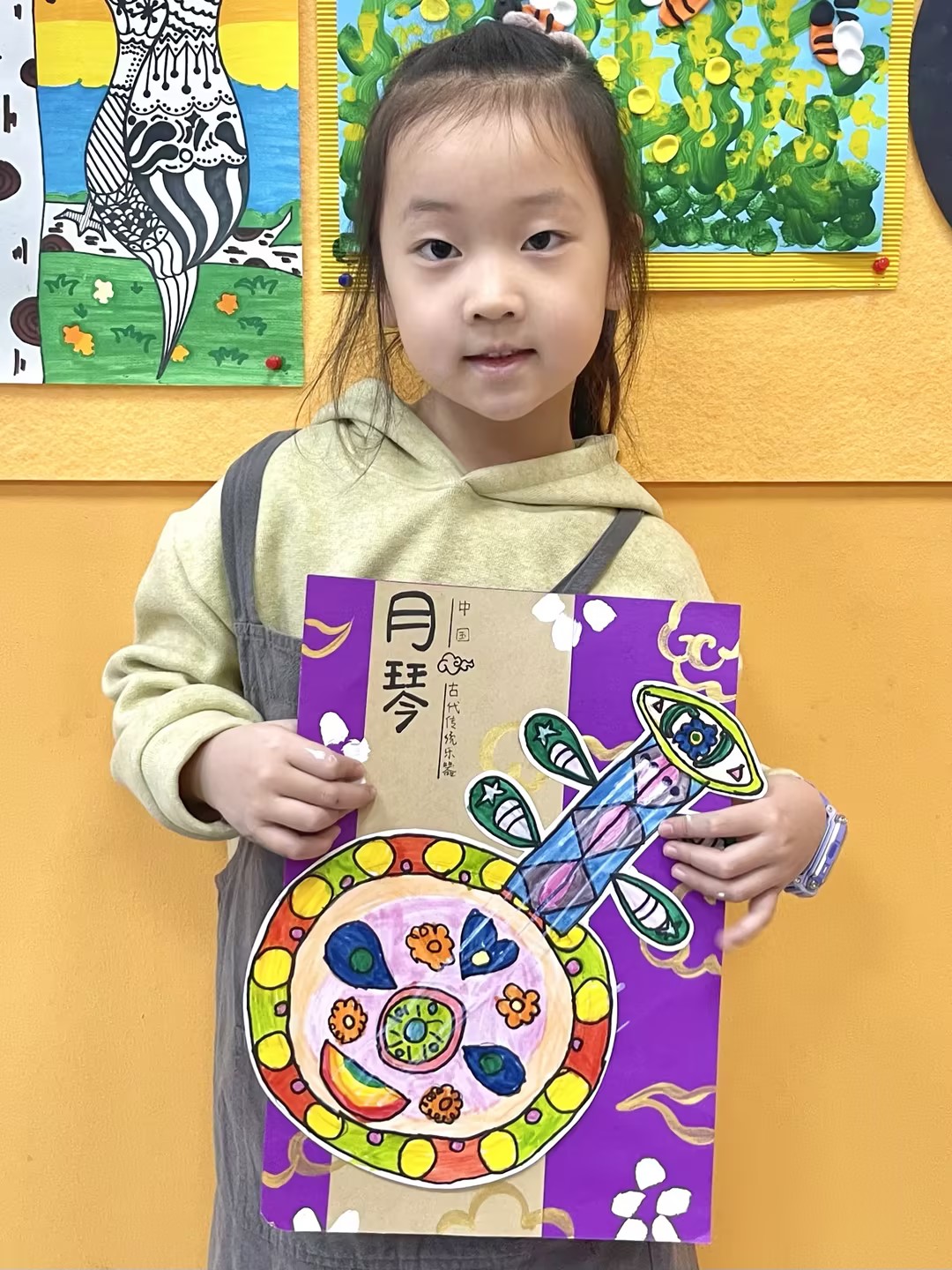 張歆暖:6歲 畫齡:1年 作品名稱:《月琴》 指導老師:麗達茂教學基地——汪博涵