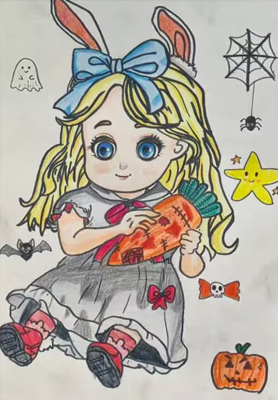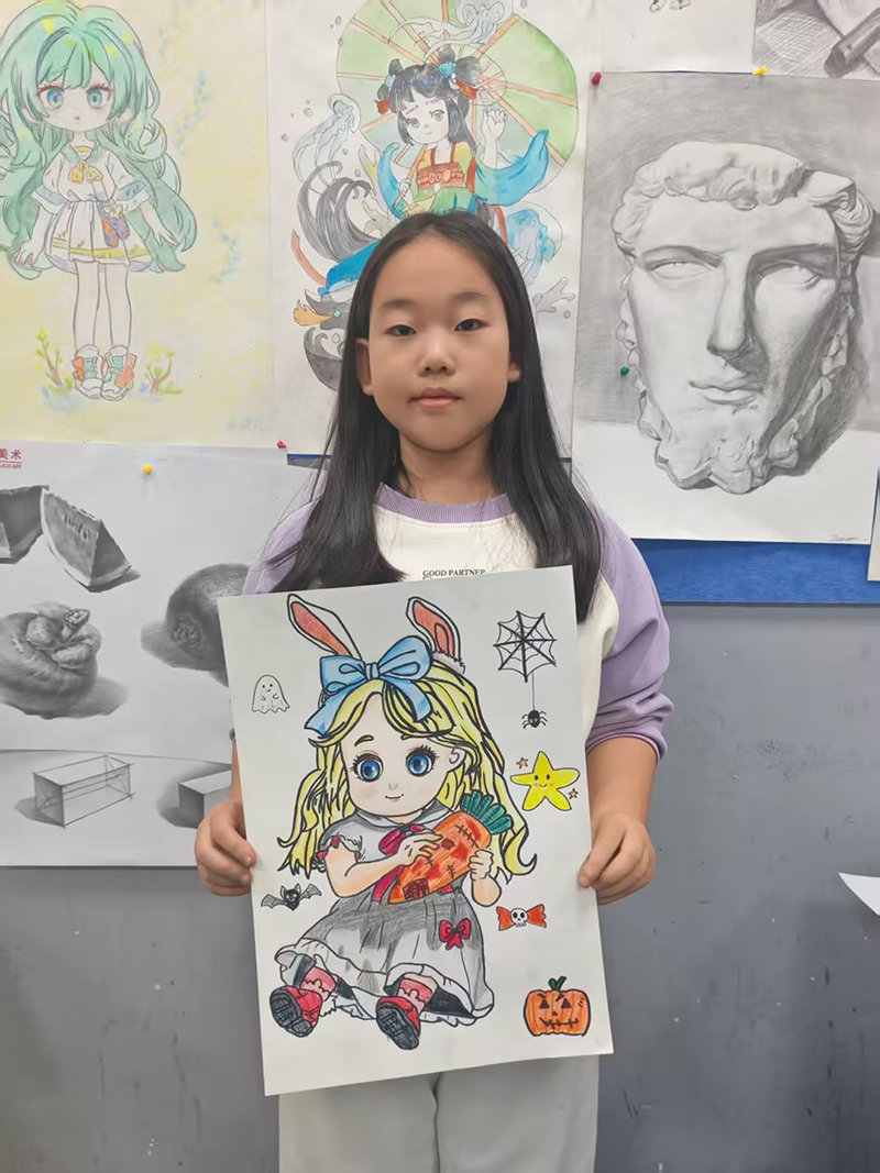 劉璇:9歲 畫齡:3年 作品名稱:《動漫人物》 指導老師:膠南維客教學基地——徐婭