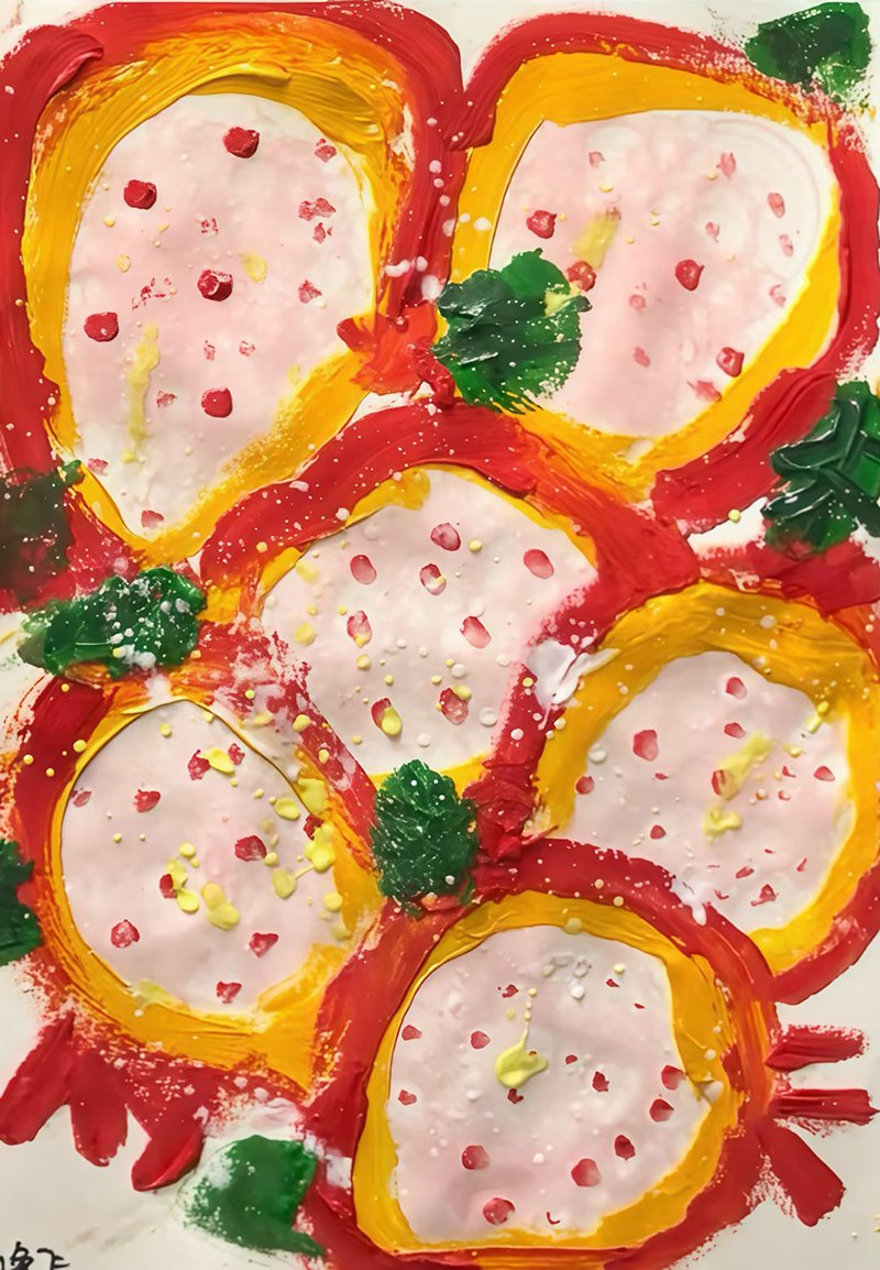 王逸飛:6歲 畫齡:2個月 作品名稱:《石榴》 指導(dǎo)老師:黃島中聯(lián)教學(xué)基地——唐雯