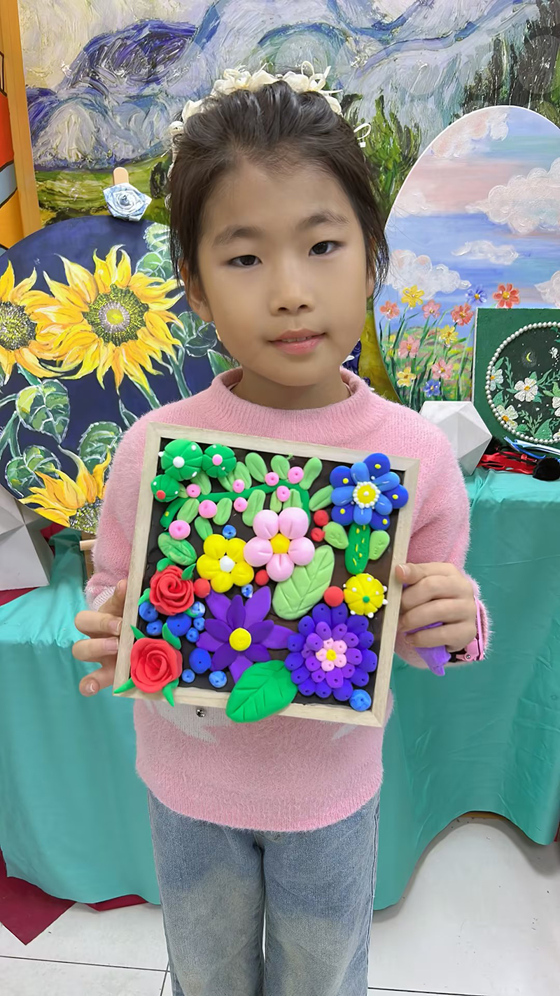 肖晨諾:7歲 畫齡:1年 作品名稱:《立體粘土畫》 指導老師:黃島富春江教學基地——鞏致瑋