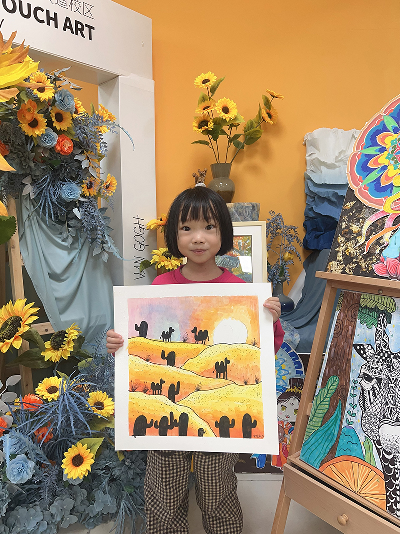 安佳檸:6歲 畫齡:1年 作品名稱:《沙漠里的駱駝》 指導(dǎo)老師:李滄星光大道教學(xué)基地——李雨彤
