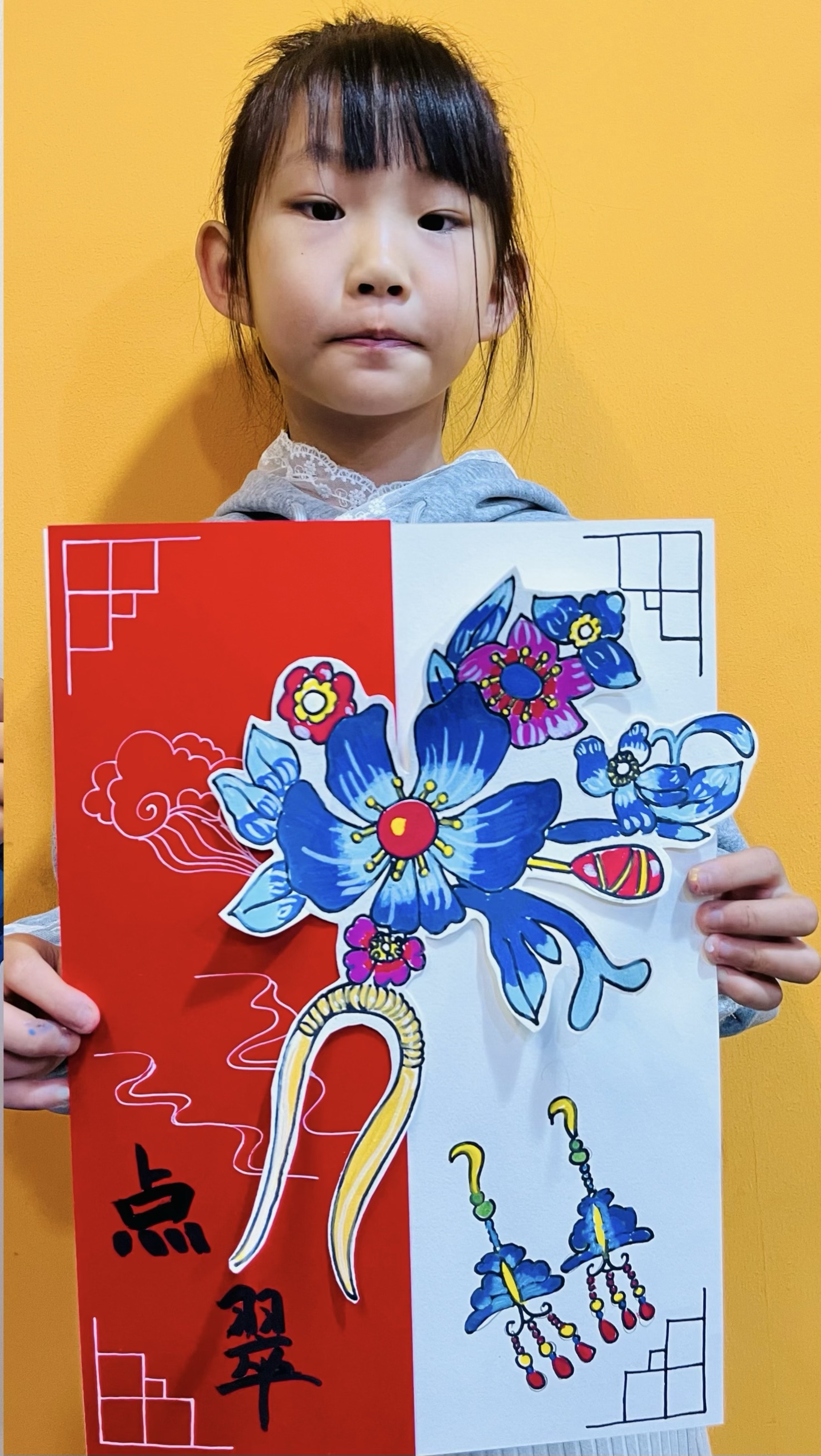 艾米:9歲 畫齡:1年 作品名稱:《點(diǎn)翠》 指導(dǎo)教師:黃島中聯(lián)教學(xué)基地——朱澤環(huán)