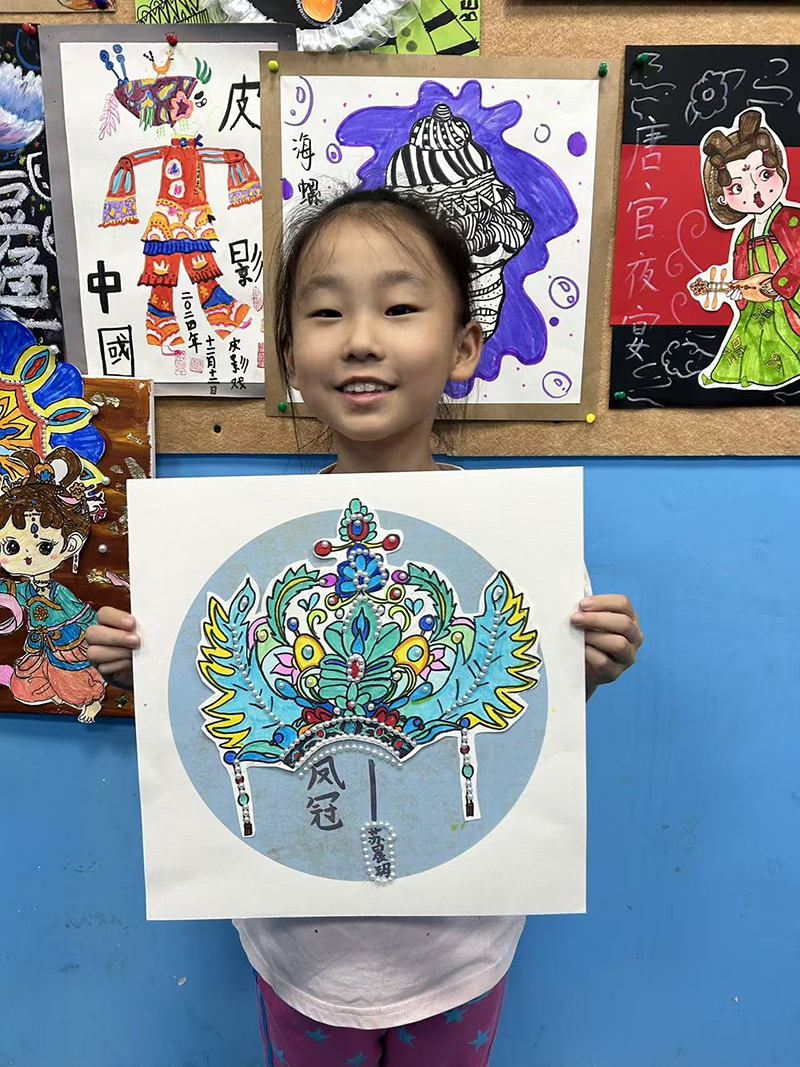 蘇晨玥:8歲 畫齡:1年半 作品名稱:《鳳冠》 指導(dǎo)老師:膠南維客教學(xué)基地——盧鈺