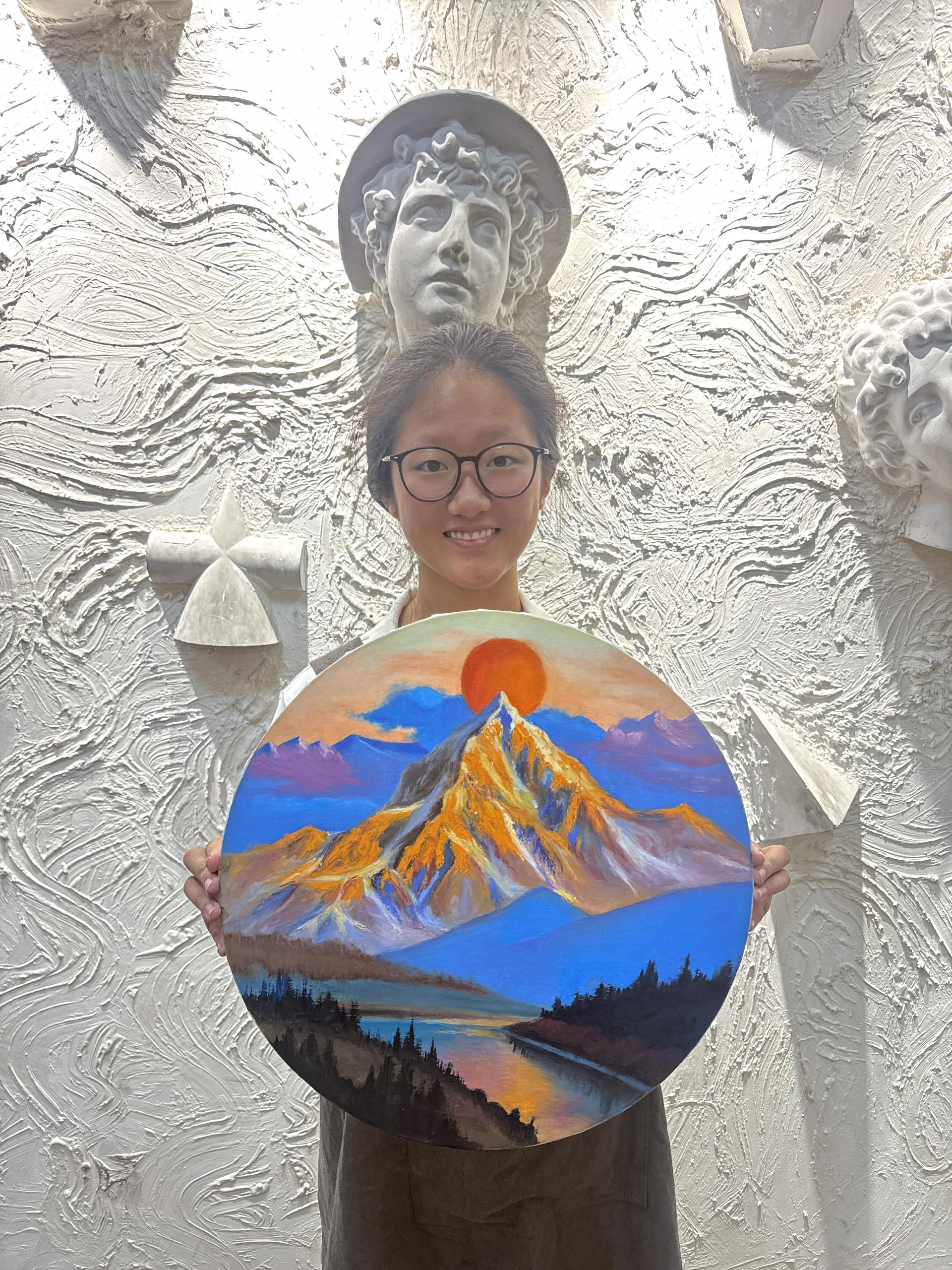 鄭琪靜:13歲 畫齡:4年 作品名稱:《日照金山》 指導(dǎo)老師:李滄星光大道教學(xué)基地——陶文倩