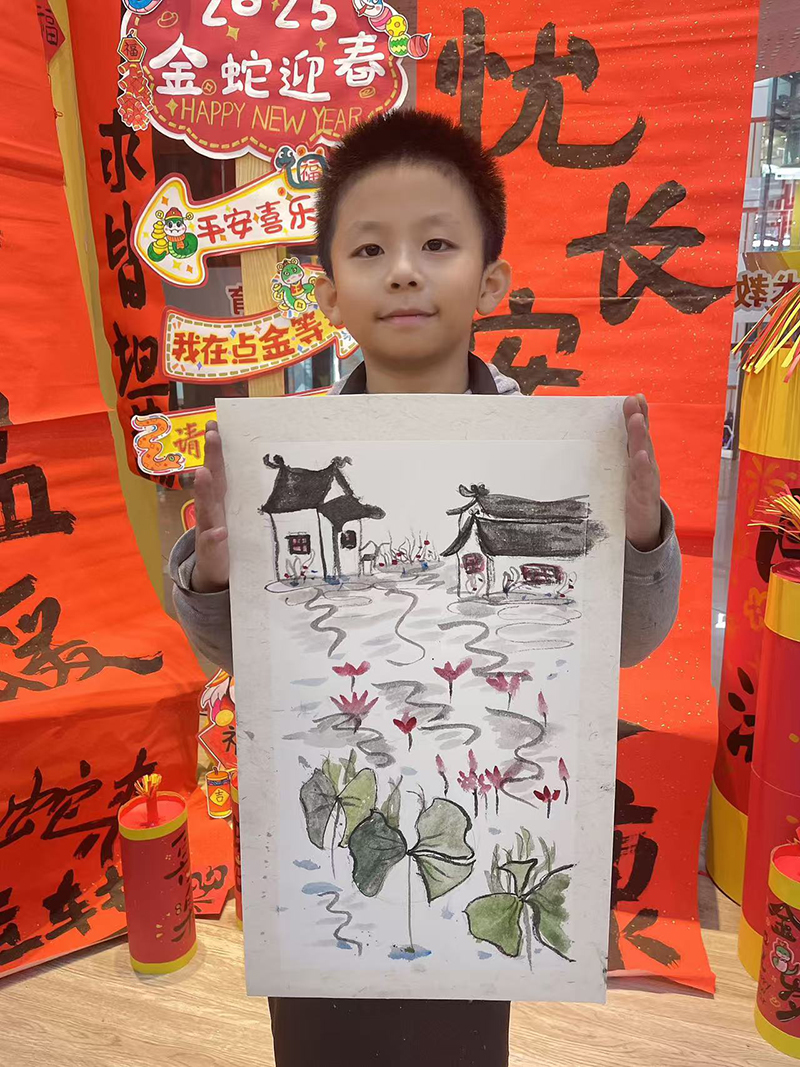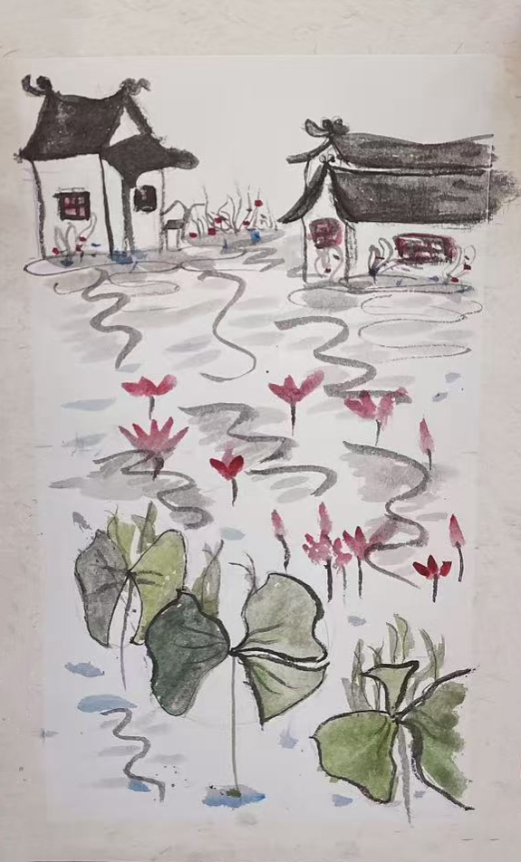 劉亦山:7歲半 畫(huà)齡:2年 作品名稱(chēng): 《水鄉(xiāng)》 指導(dǎo)教師:李滄順和教學(xué)基地——苗茜茜