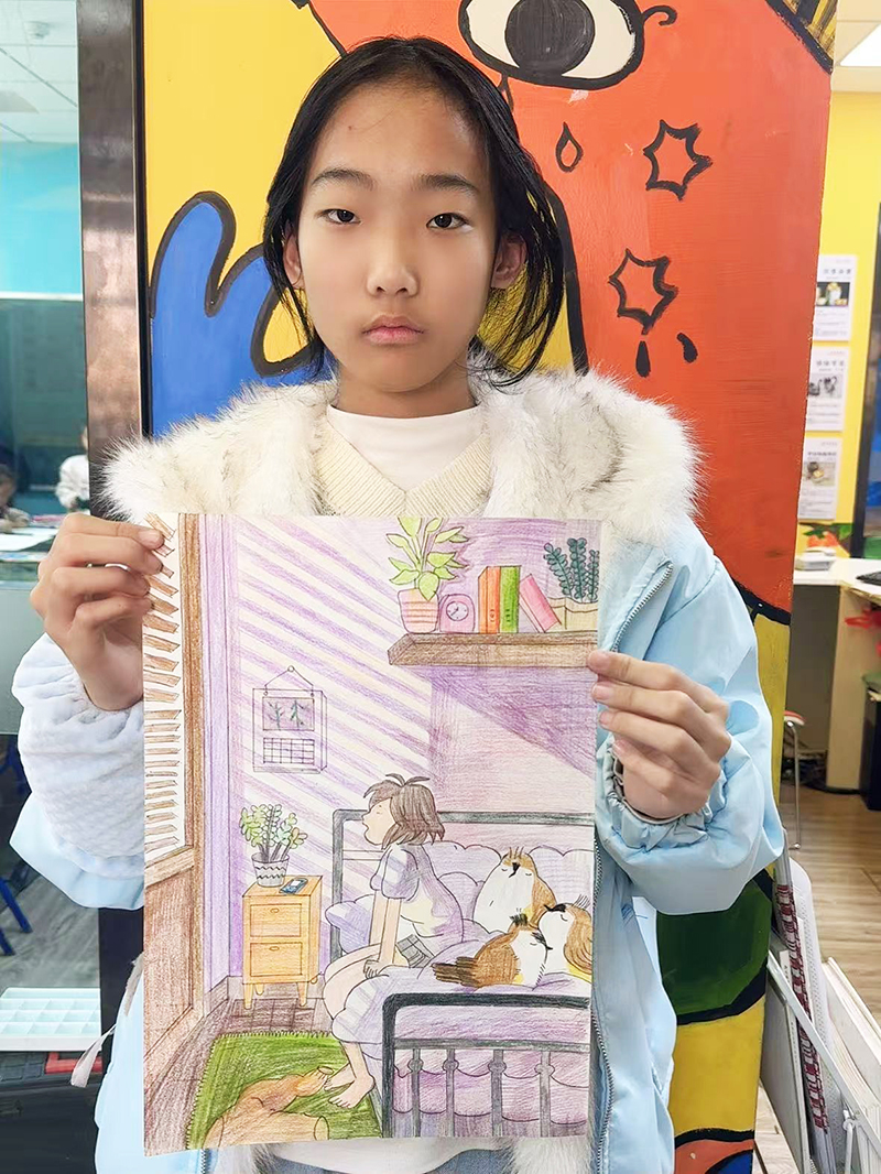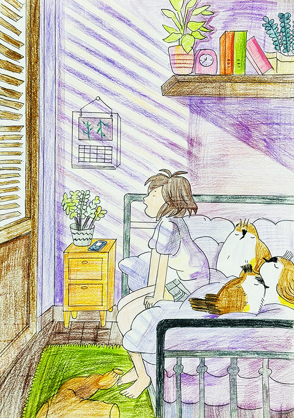 崔藝軒:14歲 畫齡:3年 作品名稱:《早晨》 指導老師:黃島官廳教學基地——穆婧