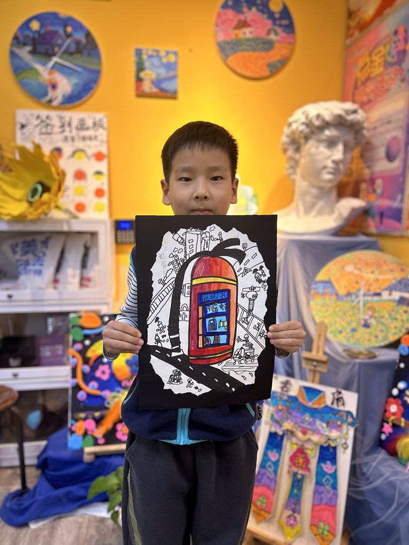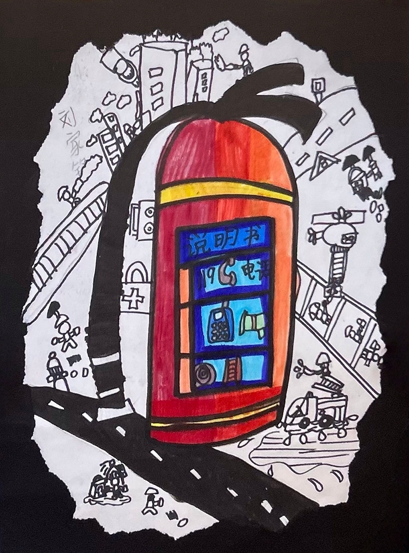 劉家銘:6歲半 畫齡:1年 作品名稱:《滅火器》 指導(dǎo)老師:中南世紀(jì)城教學(xué)基地——王欣琪