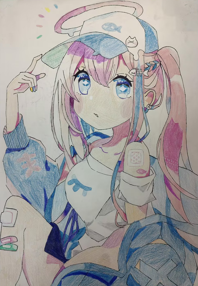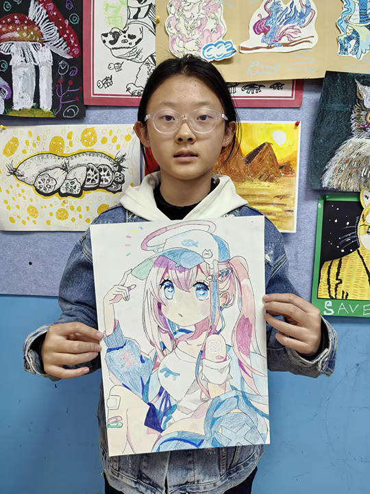 孫釔茜:11歲 畫齡:4年半 作品名稱:《動漫女孩》 指導老師:四方教學基地——蔣慶華