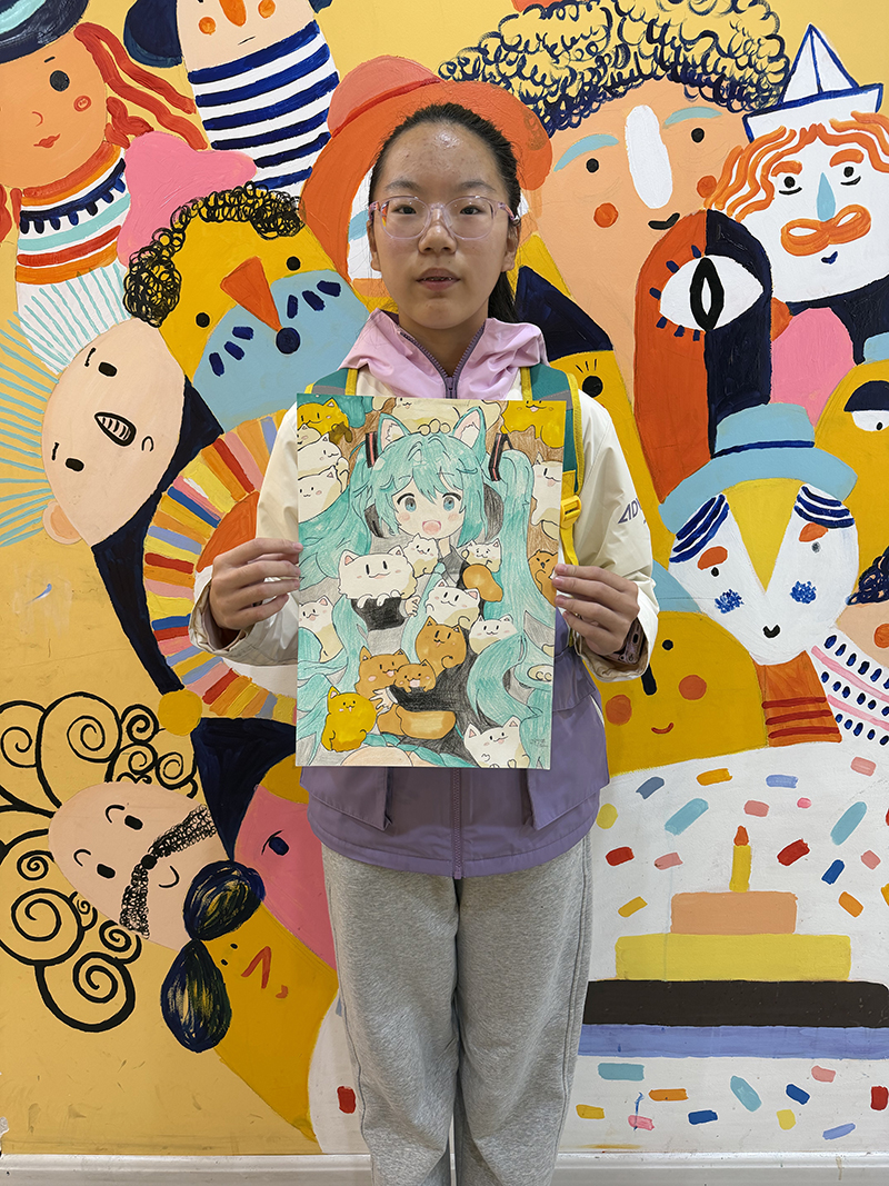 葉藝萱:12歲 畫齡:2年 作品名稱:《動漫女孩》 指導(dǎo)老師:嶗山大拇指教學基地——李凌燕