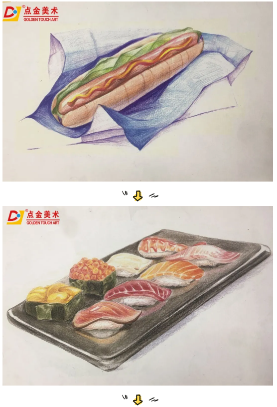 點金美術(shù)公益宅學計劃丨素描班級創(chuàng)作分享《寫實彩鉛食物和動物》