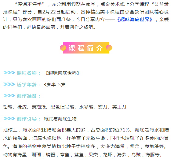 點(diǎn)金美術(shù)公益宅學(xué)計(jì)劃丨創(chuàng)意啟蒙班級創(chuàng)作分享《趣味海底世界》