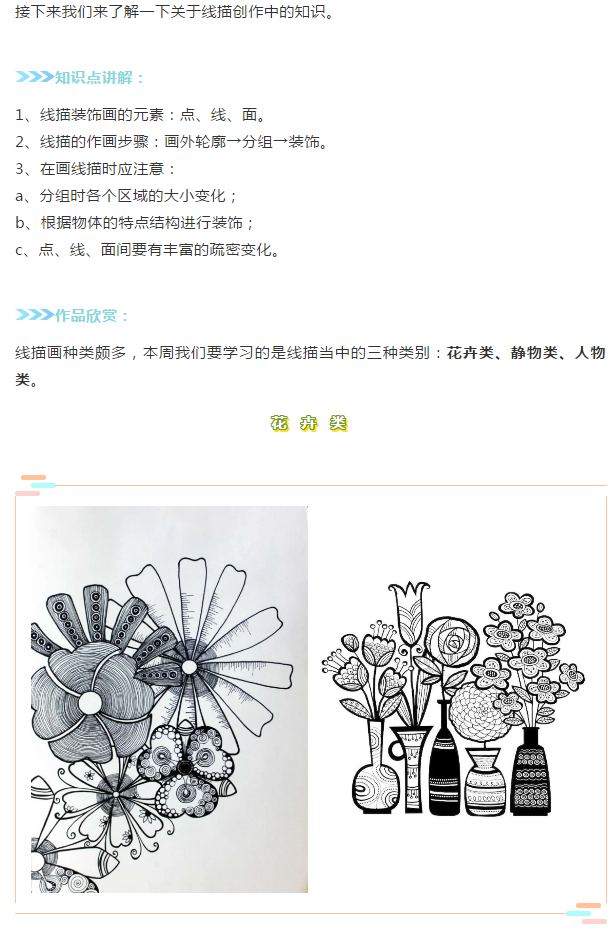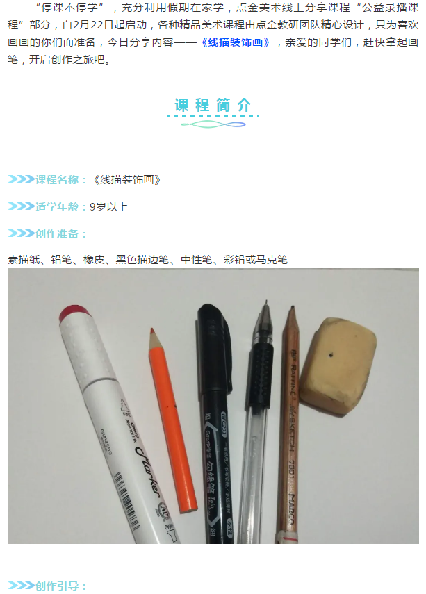 點金美術(shù)公益宅學(xué)計劃丨素描班級創(chuàng)作分享《線描裝飾畫》