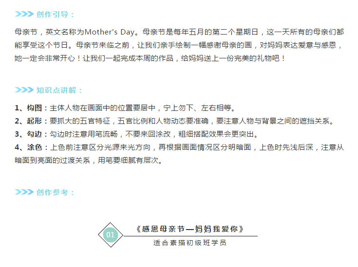 點金美術(shù)公益宅學(xué)計劃丨素描班級創(chuàng)作分享《感恩母親節(jié)》