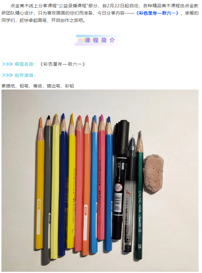 點金美術公益宅學計劃丨素描班級創(chuàng)作分享《彩色童年—致六一》