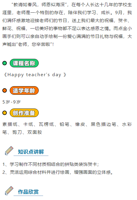 點金美術(shù)教師節(jié)主題課免費送!小心意,深情意
