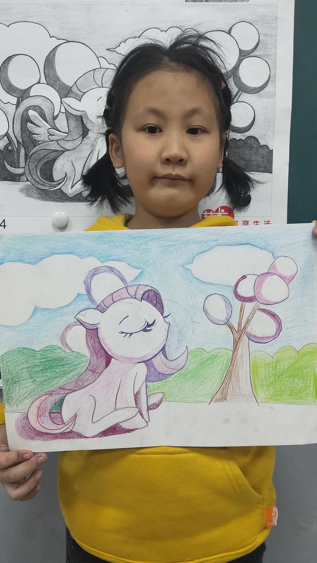 暢想啟智階段面對(duì)的是5-6歲的孩子,以創(chuàng)意寫(xiě)生、水粉、線(xiàn)描、刮畫(huà)等為主的藝術(shù)創(chuàng)作手法為主,培養(yǎng)這個(gè)階段孩子的觀(guān)察力和專(zhuān)注力。