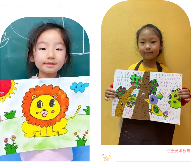 擬人化的小動(dòng)物們仿佛也有著自己故事,小學(xué)員們把它們都描繪的清清楚楚,在點(diǎn)金美術(shù)的課堂里,來(lái)一場(chǎng)愉快的森林交響曲。