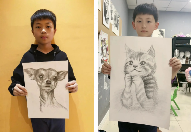 小狗、小貓,是小學(xué)員們喜歡的小動(dòng)物,我們不難從畫(huà)作中感受到筆觸的成熟,以及對(duì)小動(dòng)物們的細(xì)致觀(guān)察。