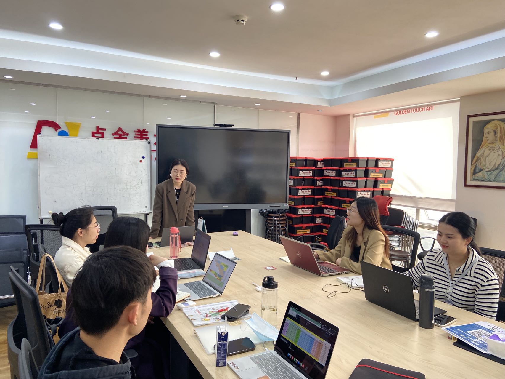 同時(shí),馬婷婷作為點(diǎn)金美術(shù)北區(qū)區(qū)域主任,兼顧9個(gè)校區(qū)的日常管理工作,對(duì)待一起工作的伙伴們同樣有如春天?!白寛F(tuán)隊(duì)里的每一位并肩作戰(zhàn)的伙伴在團(tuán)隊(duì)中有歸屬感、認(rèn)同感和價(jià)值感,能夠真切的感受到自己是這個(gè)團(tuán)隊(duì)里不可或缺的一份子,作為領(lǐng)頭人要善于發(fā)掘團(tuán)隊(duì)每個(gè)人的閃光點(diǎn),讓他們發(fā)揮所長,同時(shí)也要兼顧到他們的短板,去引領(lǐng)他們不斷成長?!痹谛^(qū)中,總能看到馬婷婷老師忙碌的身影和與同事溝通春風(fēng)般的話語。
