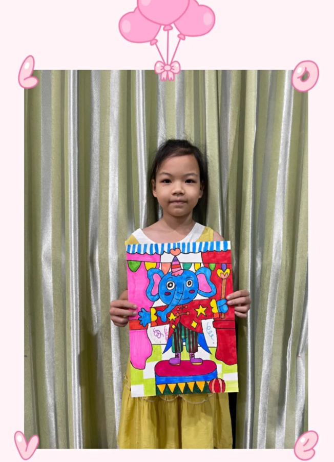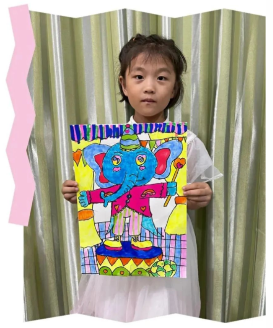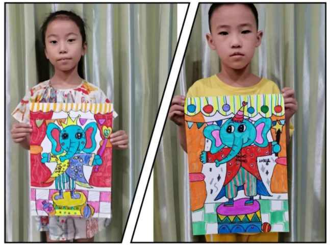 馬戲團(tuán)里不止有小丑還有各種各樣的動(dòng)物,本次課程孩子們選擇畫(huà)的是大象,畫(huà)面運(yùn)用到了各種的線條和圖形裝飾豐富了作品。