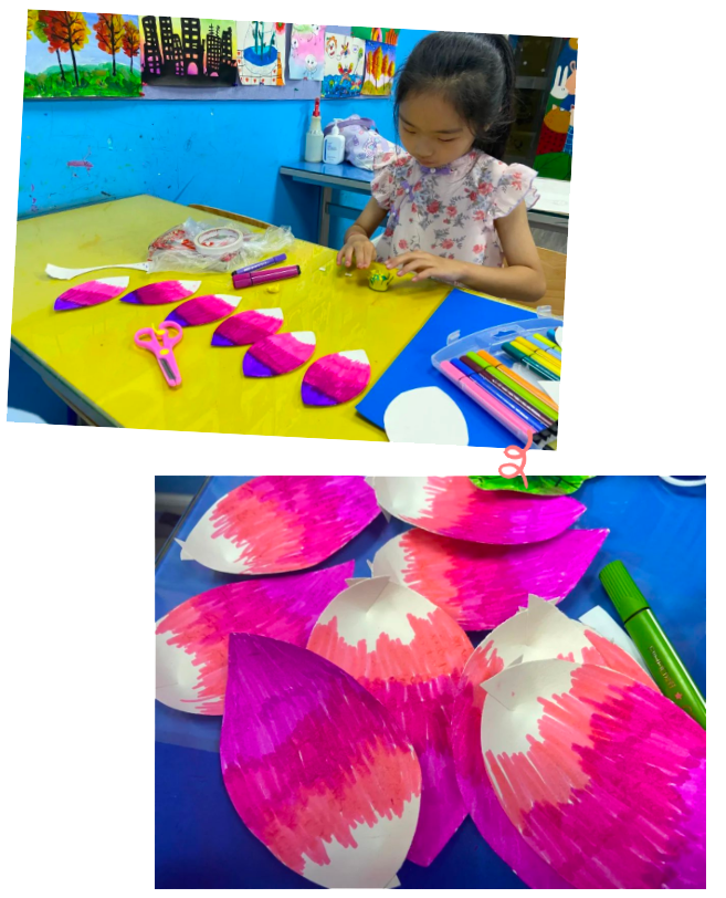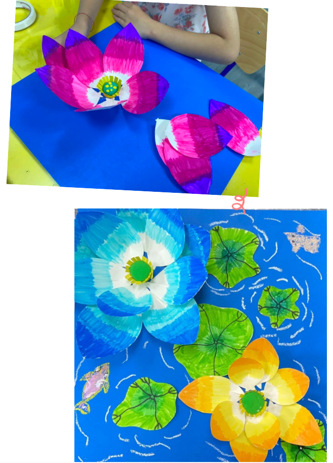 通過(guò)一堂手工課,讓孩子們了解了荷花,也學(xué)習(xí)了漸變色的運(yùn)用和拼貼手工的技巧,同時(shí)鍛煉孩子的思維能力和動(dòng)手能力。
