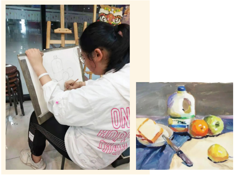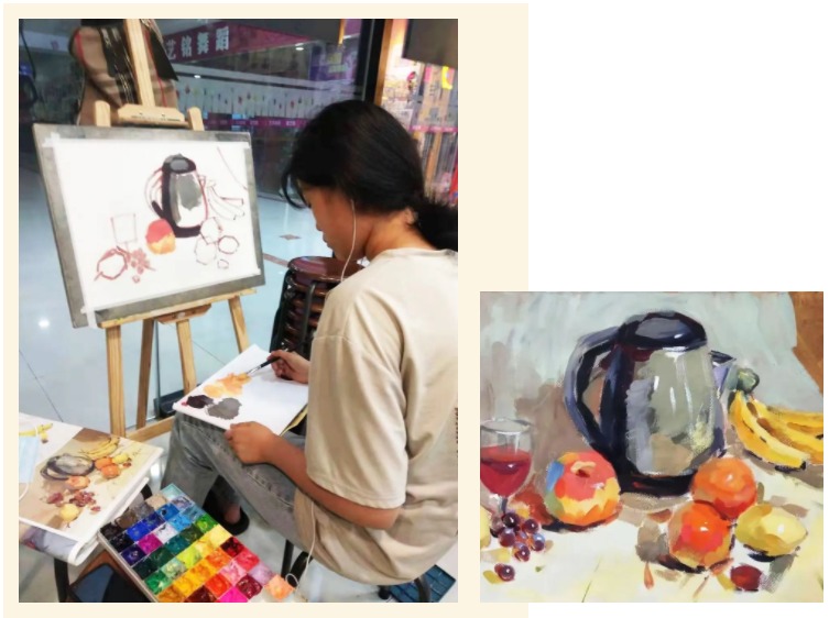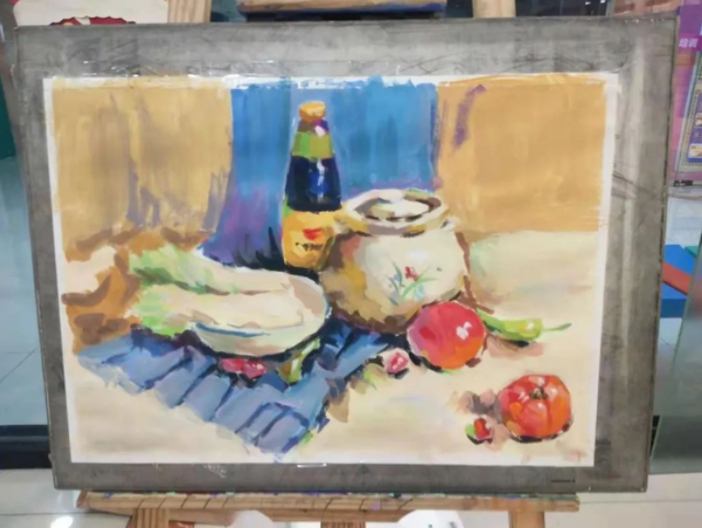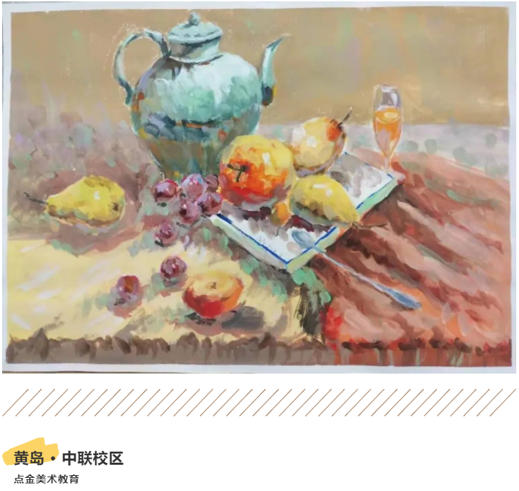 不同的藝術(shù)語言傳遞出不同的藝術(shù)感受,有的是活潑的、有的是寧靜的、有的是激烈的、有的是莊重的,作品可以反映學(xué)員內(nèi)心的情感,雖然是同樣的靜物,但是在不同的色彩調(diào)配下,也有著不同的表現(xiàn)。