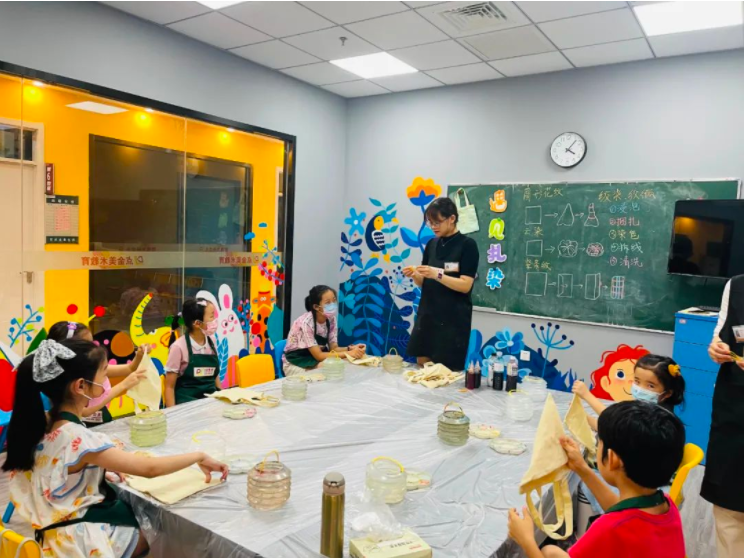 扎染古稱扎纈、絞纈、夾纈和染纈,是國家級非物質(zhì)文化遺產(chǎn),是中國民間一種傳統(tǒng)而獨特的染色工藝。暑期,大拇指校區(qū)的老師們帶著學(xué)員們了解扎染文化,領(lǐng)略不同方式作畫的魅力。
