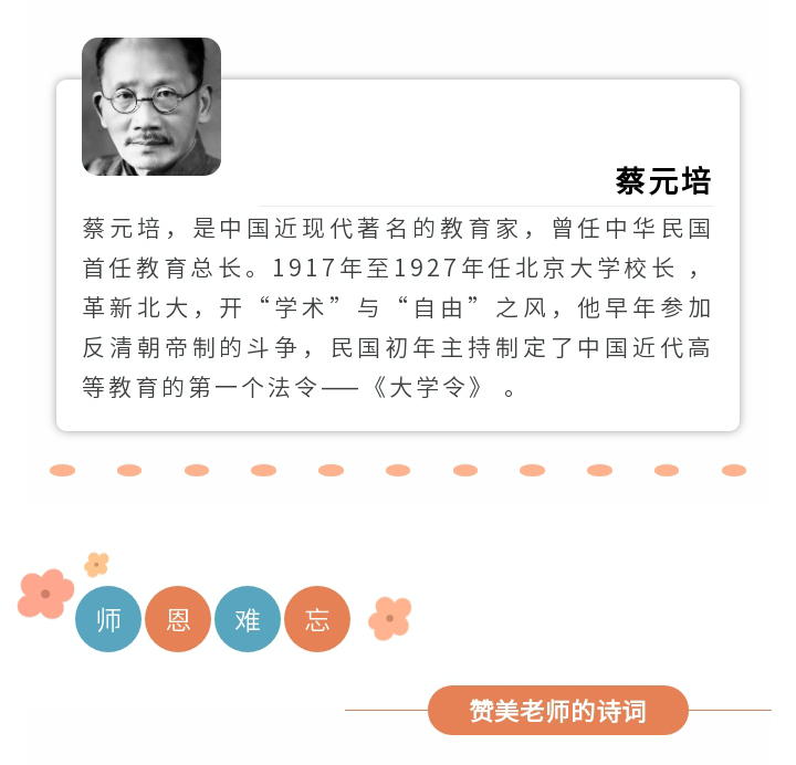 除了原創(chuàng)的精美手抄報模板,小編還為小學(xué)員們準(zhǔn)備了很多與教師節(jié)相關(guān)的節(jié)日歷史演變、介紹幾位影響中國歷史教育家以及中國古代贊美老師的詩詞及其演變。