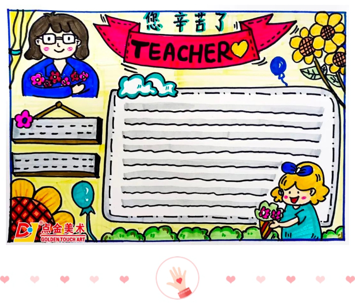 在中國重要的節(jié)日和重大節(jié)氣中,點金美術(shù)的老師們都會為小學(xué)員們帶來原創(chuàng)的手抄報素材模板,小學(xué)員們可以互相組合、借鑒,結(jié)合文字素材,完成一幅精美的手抄報作品,也可以作為小小的禮物送給老師呢~