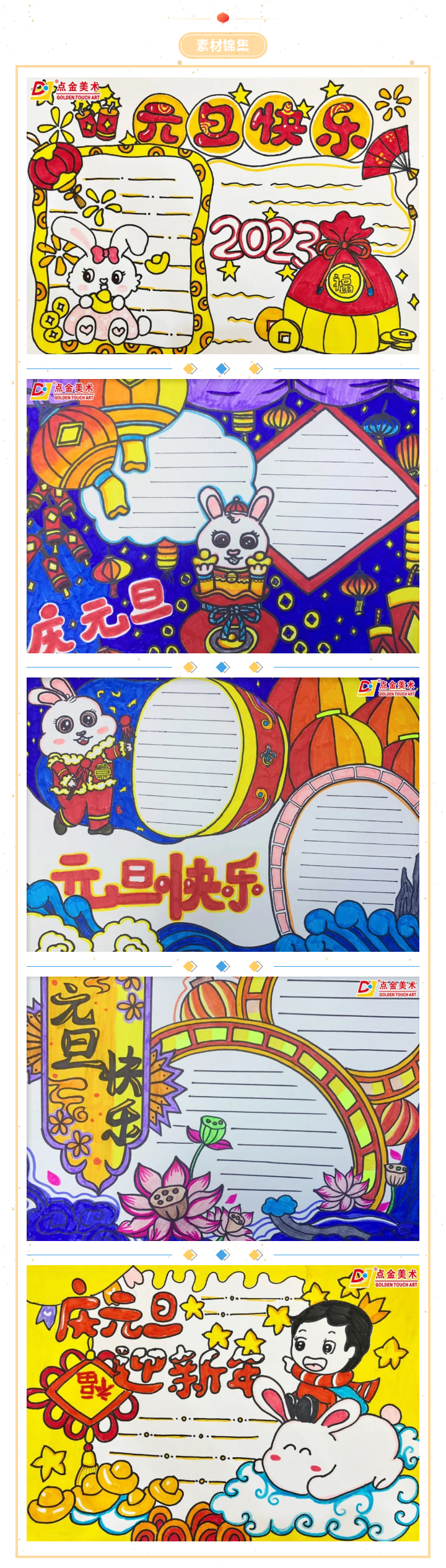 值此重要節(jié)日、節(jié)點(diǎn),當(dāng)然少不了點(diǎn)金美術(shù)的老師們?yōu)樾W(xué)員們帶來(lái)的原創(chuàng)手抄報(bào)素材模板和主題畫。小學(xué)員們可以互相組合、借鑒,結(jié)合文字素材,完成一幅精美的手抄報(bào)作品或主題畫作。