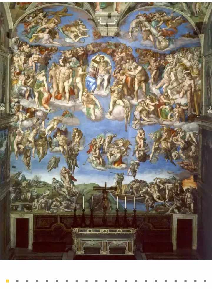 就在《創(chuàng)世紀(jì)》這幅壁畫所在的西斯廷教堂,另一幅壁畫《最后的審判》也是米開朗基羅的曠世巨作。