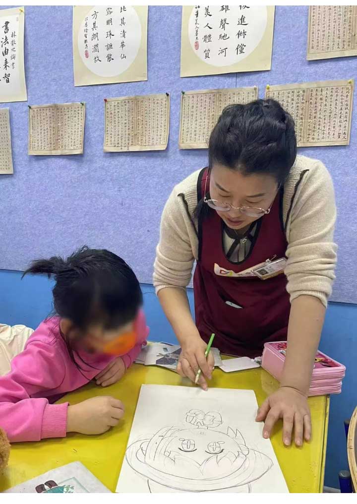 “作為一名幼兒美術(shù)教師,不光要教授孩子專業(yè)美術(shù)知識,提升美術(shù)素養(yǎng),更要在教學(xué)過程中培養(yǎng)孩子的學(xué)習(xí)習(xí)慣、學(xué)習(xí)能力。我會比較注重老師們這方面的學(xué)習(xí),每階段孩子的心理發(fā)育特點都不同,教學(xué)方法、教學(xué)側(cè)重點也會不盡相同。我們不光要做專業(yè)的美術(shù)老師,也要做有經(jīng)驗的‘兒童心理學(xué)家’?!?/span>
