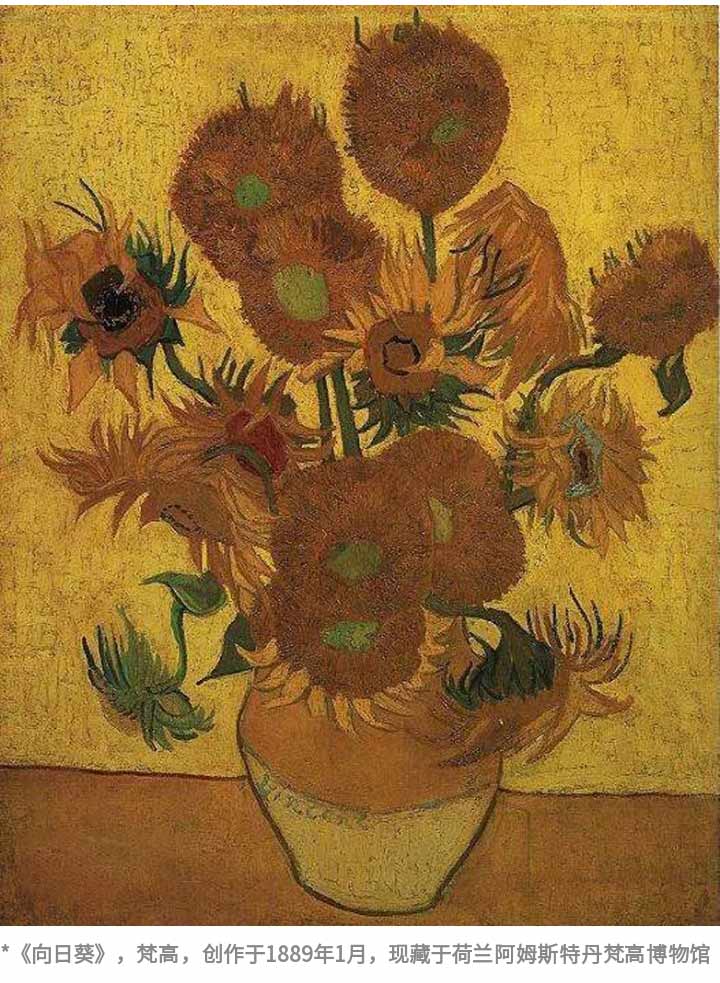 在藝術(shù)作品中,有很多暖色調(diào)為主的畫作,熱情奔放,充滿生命力讓人看完過目不忘,感受到生命的浪漫和激情,其中比較著名的就是梵高的《向日葵》。