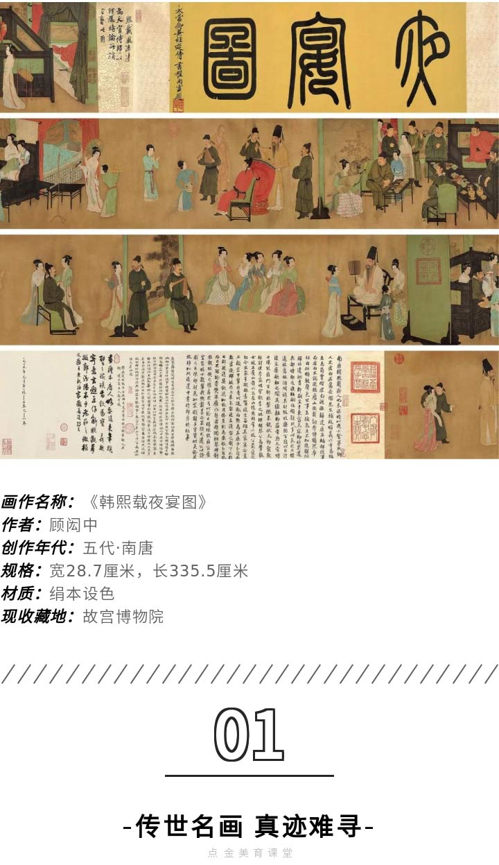這一期,讓我們欣賞五代十國(guó)時(shí)期南唐畫家顧閎中的《韓熙載夜宴圖》,整幅作品線條遒勁流暢,工整精細(xì),構(gòu)圖富有想象力。