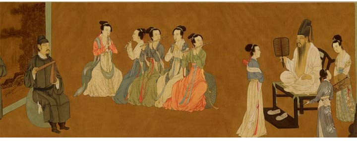 四段“清吹”,韓熙載解衣盤坐椅上,欣賞著五個(gè)歌女合奏。